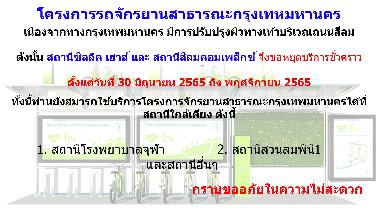 ปิดให้บริการสถานีซิลลิค เฮาส์ และ สถานีสีลมคอมเพล็กซ์ ชั่วคราว